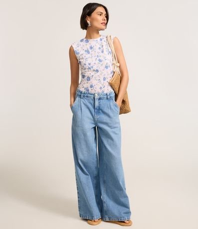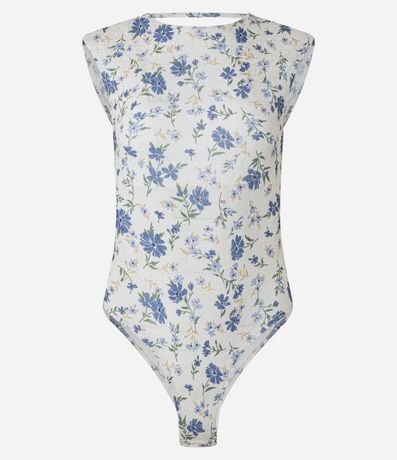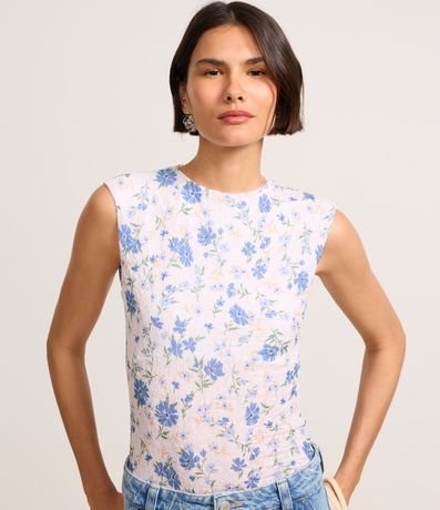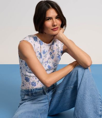 Ref: Body feminino confeccionado em anarruga, peça com gola redonda, sem manga, franzido lateral, decote nas costas, textura e estampa flora liberty.