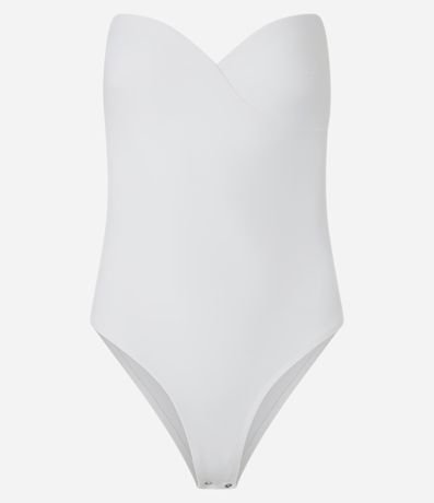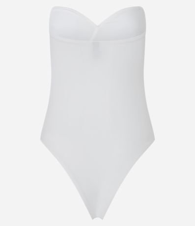 Body tomara que caia com decote tomara que caia confeccionado em crepe e sem estampa.