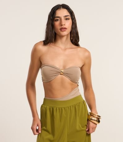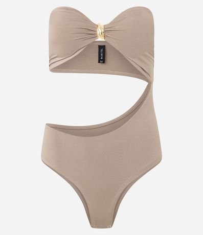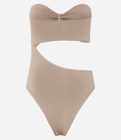 Body feminino confeccionado em microfibra no modelo tomara que caia com decote coração, aviamento e recorte profundo com fechamento entre as pernas.
