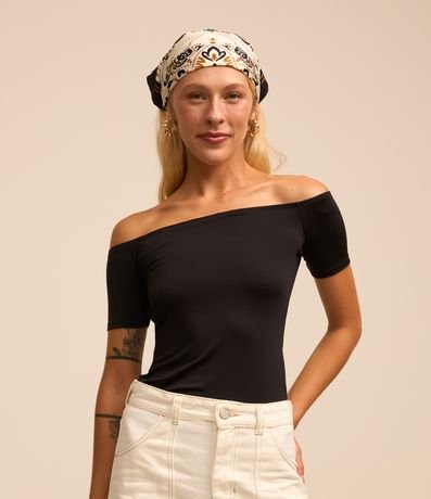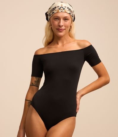 Ref: Body manga curta com decote ombro a ombro, sem estampa e confeccionado em microfibra leve.