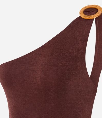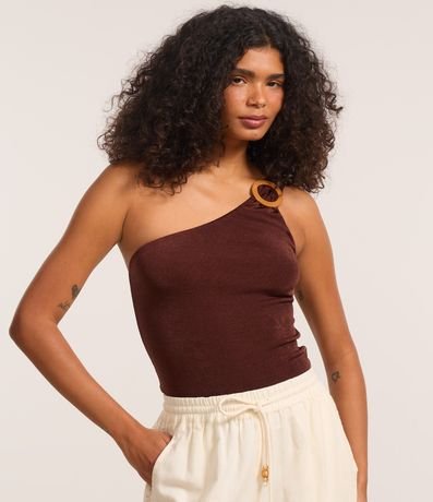 Ref: Body sem mangas, confeccionado em microfibra, com decote ombro único e alça larga. Peça tem detalhe metalizado com carinha de fivela redonda e texturizada no ombro. Tanto a textura quanto o detalhe, dão à este body uma vibe bem retrô/vintage com um estilo revisitado bem despojado.