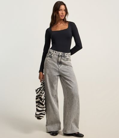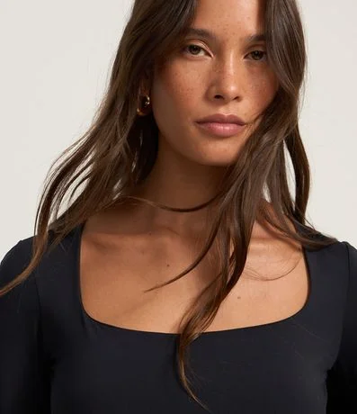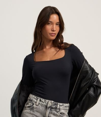 Ref: Body manga longa, confeccionado em microfibra com decote quadrado e fechamento por botões no entrepernas.