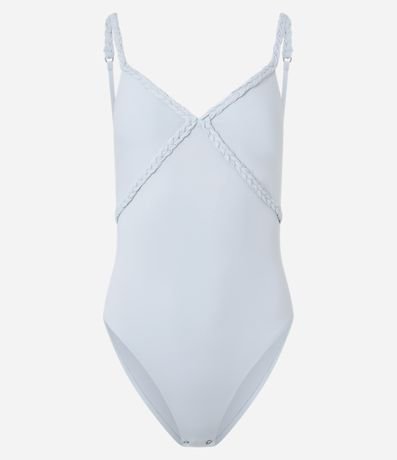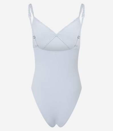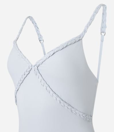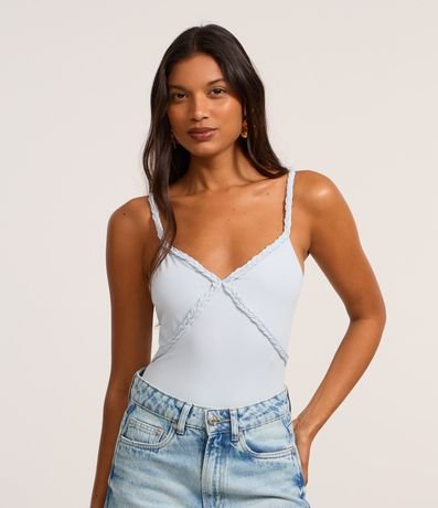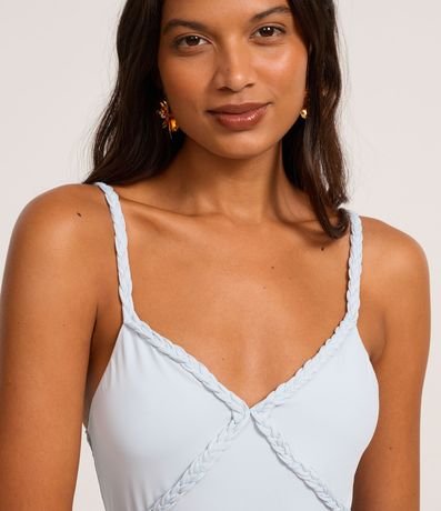 Ref: Body de alcinha fina regulável, confeccionado em microfibra com detalhe trançado no busto e fechamento por botões entre as pernas.