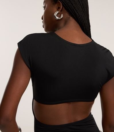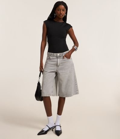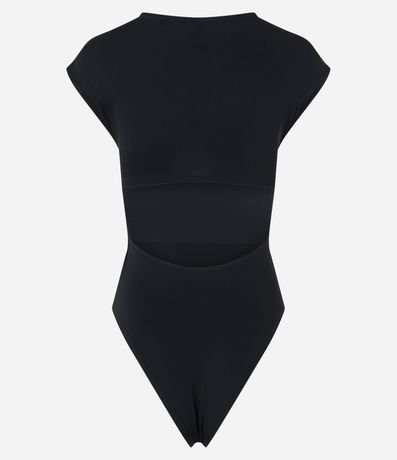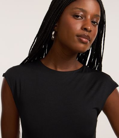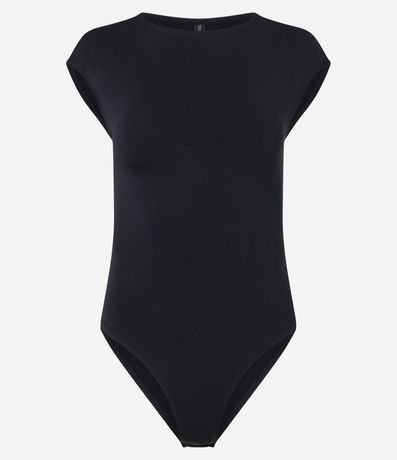 Body sem cavas com gola redonda. Peça sem cavas e com mangas.