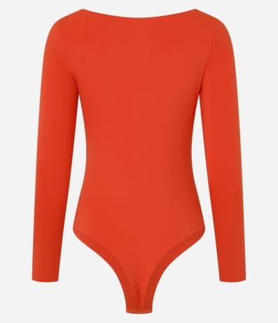 Ref: Body feminino em microfibra, com decote redondo profundo, mangas longas e ajustadas, modelagem acinturada e acabamento selado.