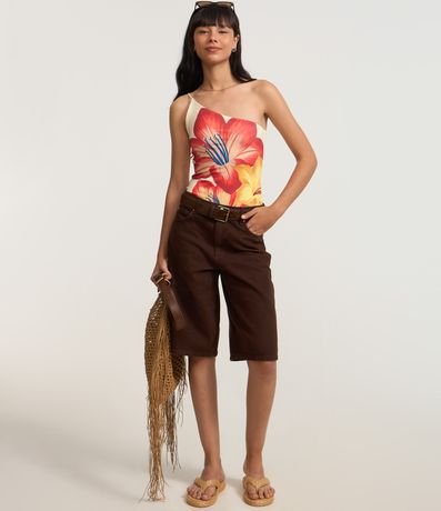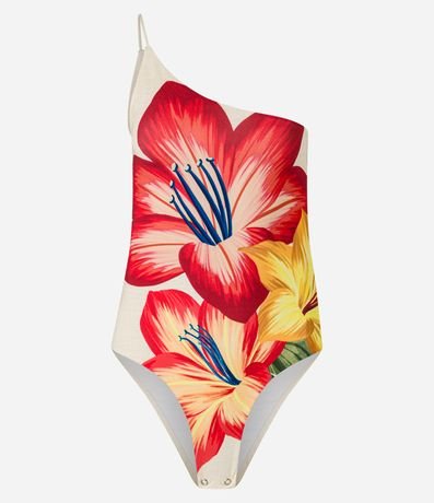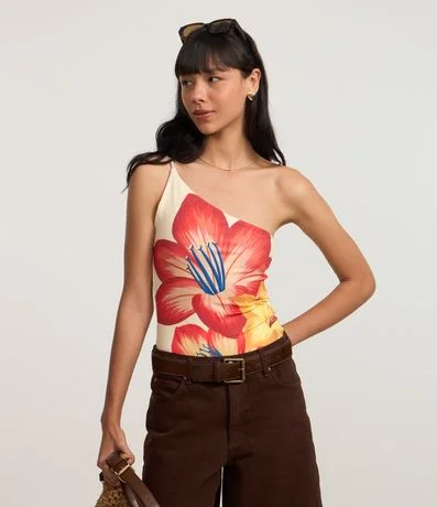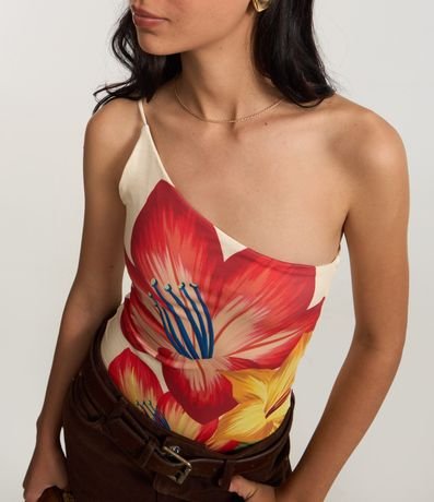 Ref: Body com decote um ombro só, confeccionado em microfibra produzida através de boas práticas ambientais, alcinha fina e estampa floral na parte da frente.