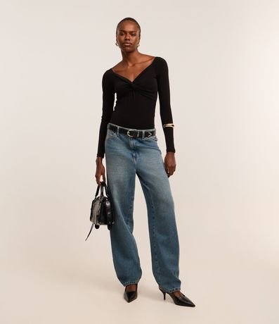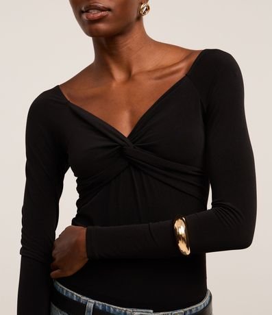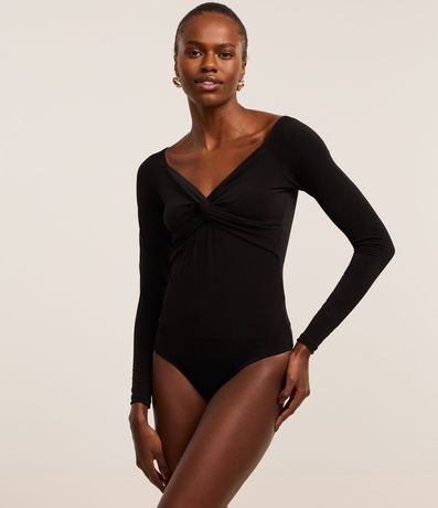 Ref: Body de mangas longas, confeccionado em microfibra com caimento leve, com decote V no busto e decote quadrado nas costas. Produto fabricado através de boas práticas ambientais.