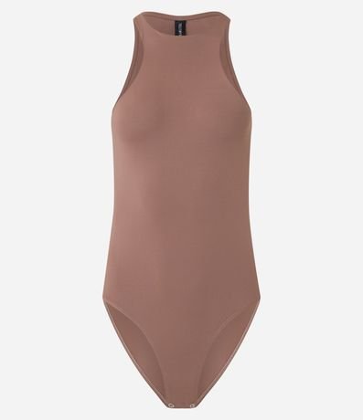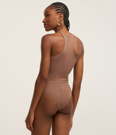 Body com alça larga, confeccionado em poliamida sem estampa e com botões para fechamento no entrepernas.