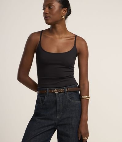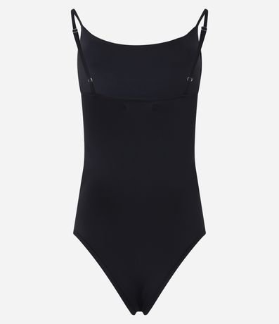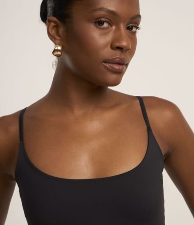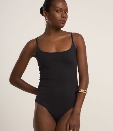 Ref: Body feminino com alças finas e reguláveis. Peça com decote U, e fechamento com botão na parte inferior. Confeccionado em poliamida.