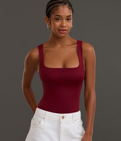 Ref: Body sem mangas com decote quadrado e alças largas, confeccionado em poliamida com toque macio e caimento ajustado. Possui fechamento inferior por botões de pressão e forro interno para maior conforto. Peça com boas práticas ambientais.