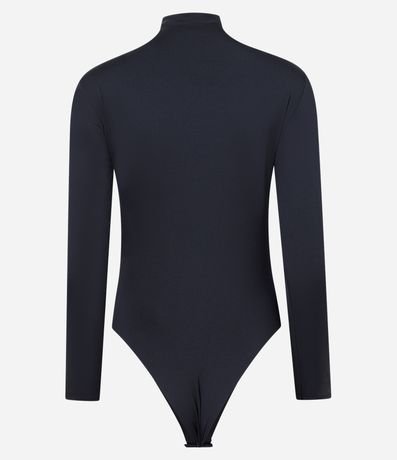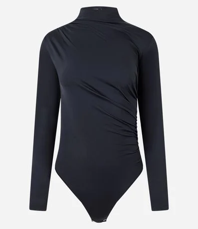 Ref: Body feminino confeccionado com poliamida. Possui mangas longas, gola média rente ao pescoço e franzidos no ombro e laterais. Peça versátil para uso no dia a dia ou produções mais elegantes.