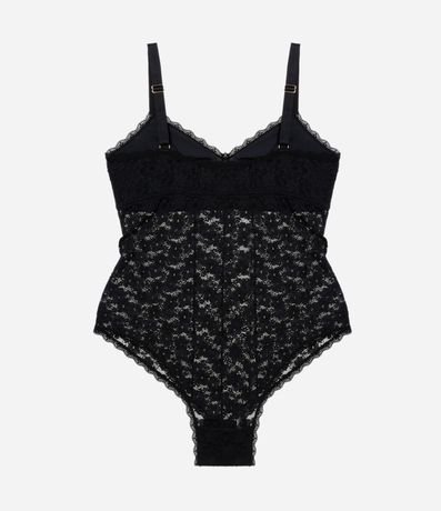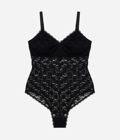 Ref: Body lingerie de renda, sem bojo com busto triangular e alças reguláveis.