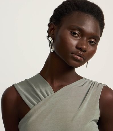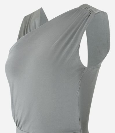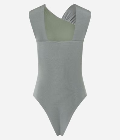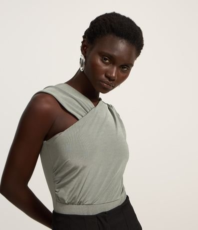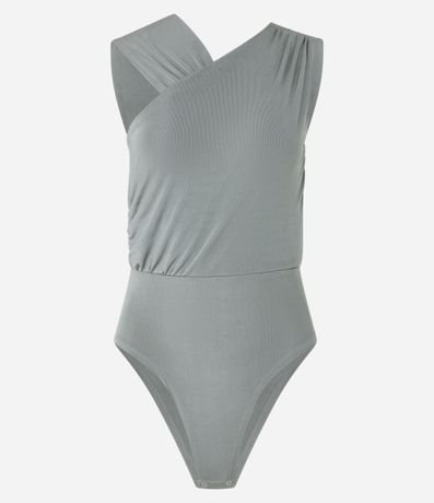 Ref: Body feminino, confeccionado em ribana, com detalhe assimétrico no ombro e franzidos nas laterais.