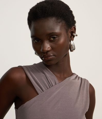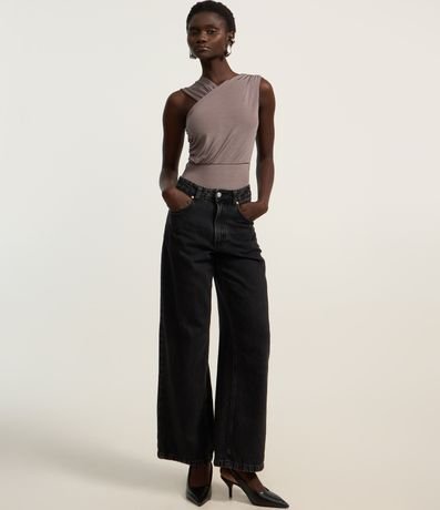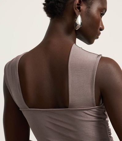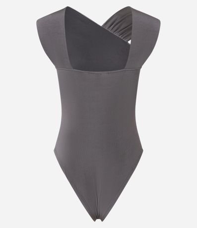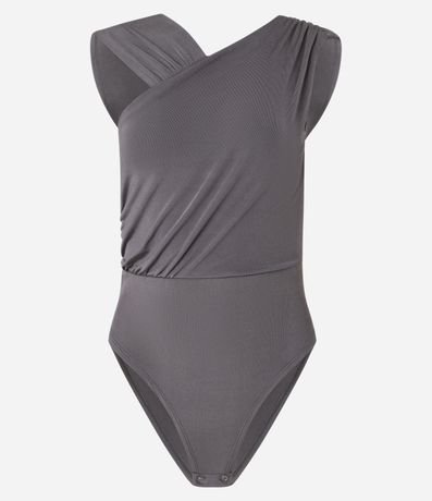 Ref: Body feminino, confeccionado em ribana, com detalhe assimétrico no ombro e franzidos nas laterais.
