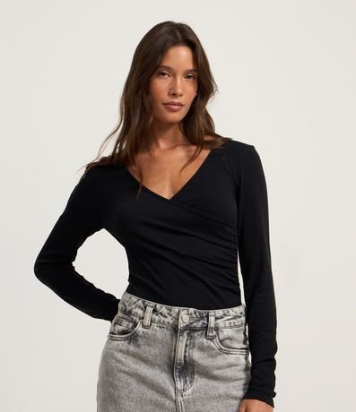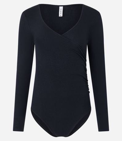 Body manga longa, confeccionado em ribana com boas práticas ambientais e decote v transpassado.