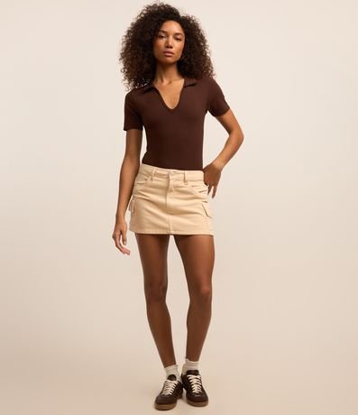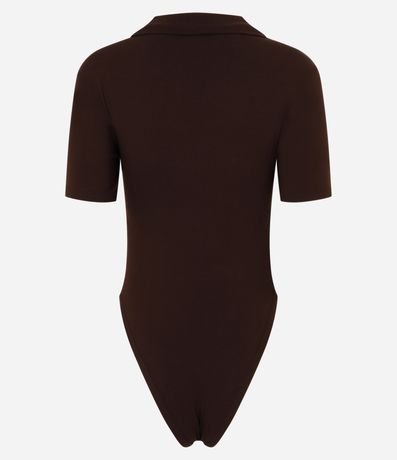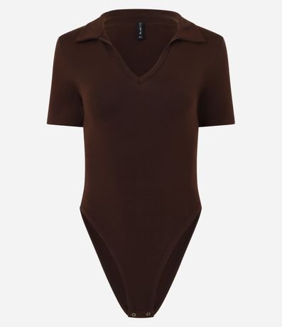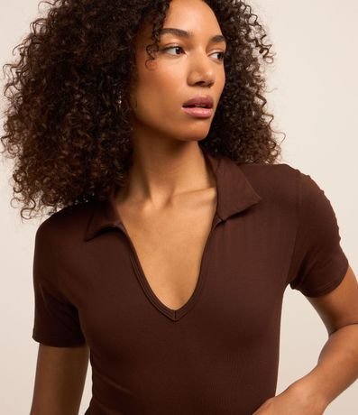 Ref: Body feminino em ribana, com decote gola polo com lapela, manga curta sem estampa.