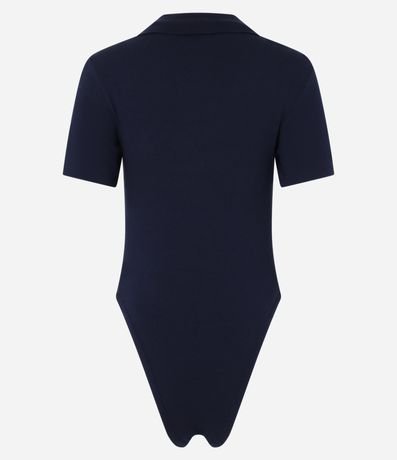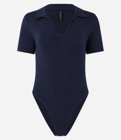 Body feminino em ribana, com decote gola polo com lapela, manga curta sem estampa.