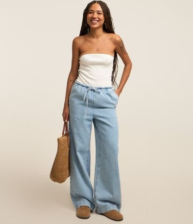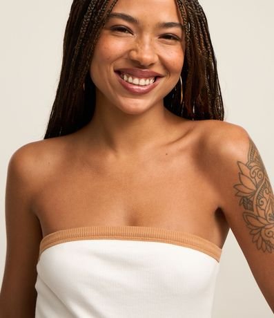 Ref: Body tomara que caia confeccionado em ribana com viés contrastante e leve textura.
