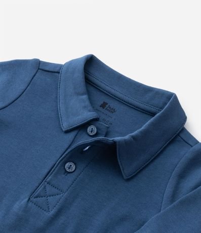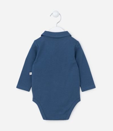 Ref: Body em ribana infantil com gola polo, mangas longas e fechamento entrepernas.