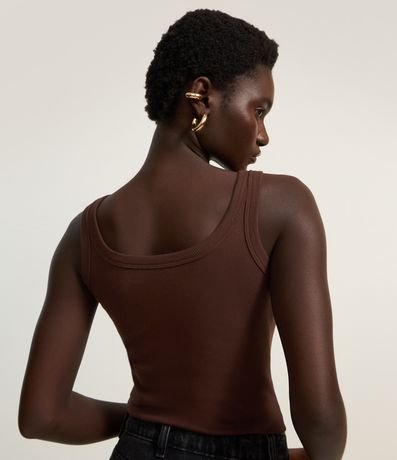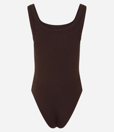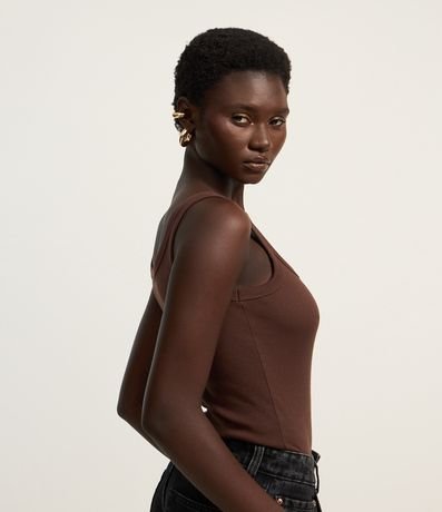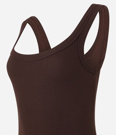 Body feminino confeccionado em ribana com decote redondo e alças fina com viés transpassado.