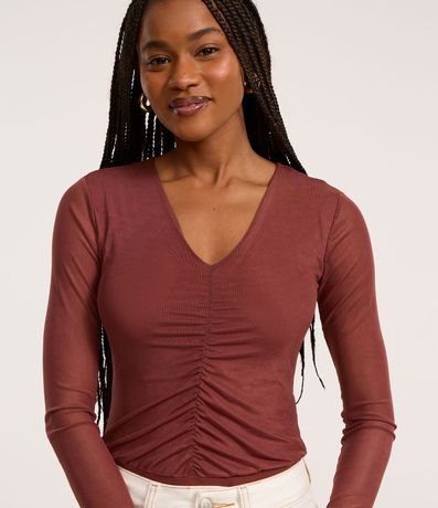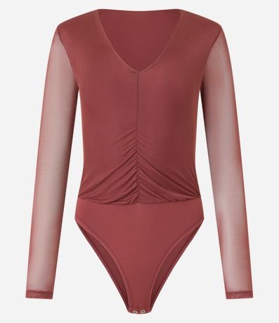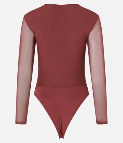 Ref: Body manga longa, confeccionado em tule, com decote em v e angas transparentes.
