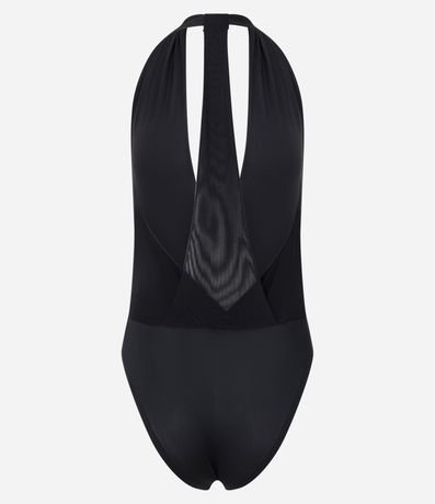 Body frente única, confeccionado em tule produzido através de boas práticas ambinetais e com detalhe diferenciado nas costas abertas.