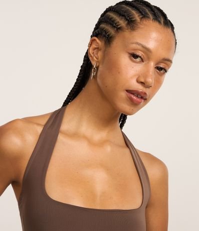 Body feminino confeccionado em microfibra, com decote quadrado frente única e sem estampa.