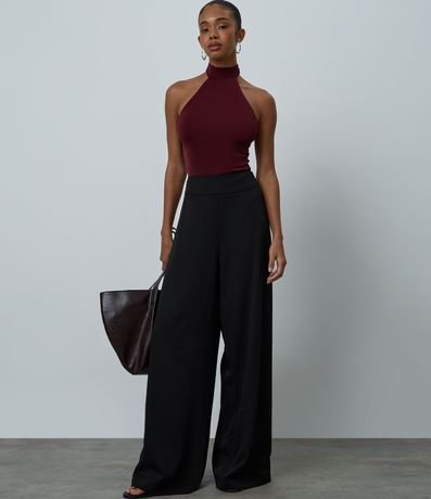 Ref: Body halter em ribana com golinha e caimento ajustado ao corpo, ideal para compor looks modernos e sofisticados. O brilho discreto valoriza o visual para festas e ocasiões especiais. Peça versátil e confortável, perfeita para criar produções noturnas elegantes.