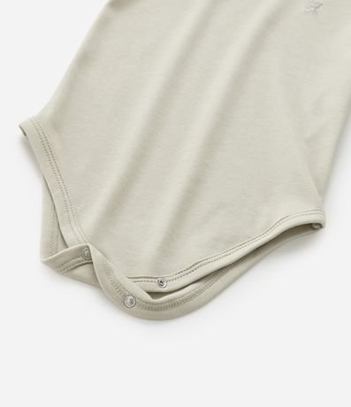 Body infantil básico confeccionado em algodão peruano mais sustentável, com gola americana, mangas curtas e fechamento no entrepernas.