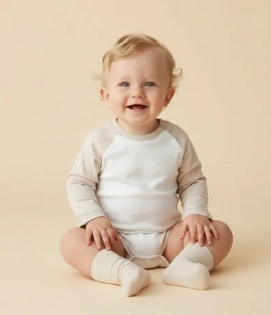 Ref: Body infantil confeccionado em algodão certificado BCI com elastano, oferecendo toque macio e conforto diário. Possui gola redonda com abertura lateral por botões, mangas longas contrastantes e fechamento entrepernas por pressão, garantindo praticidade nas trocas e caimento confortável.