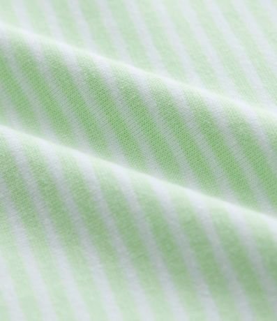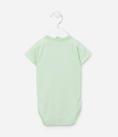 Body infantil confeccionado em algodão, com gola redonda, manga curta e bolsinho com estampa de tigrinho e listras.
