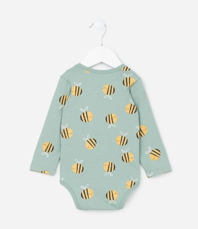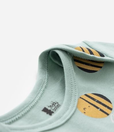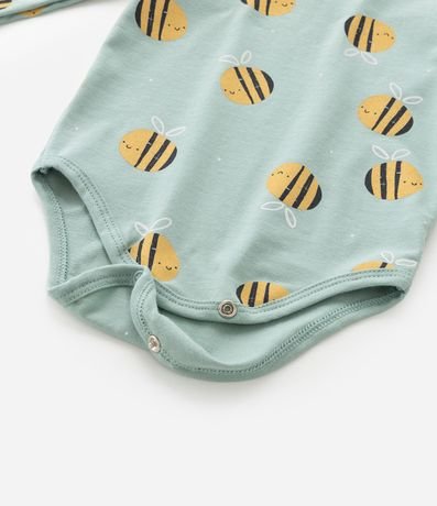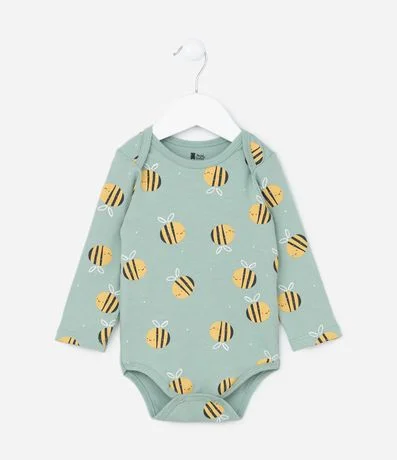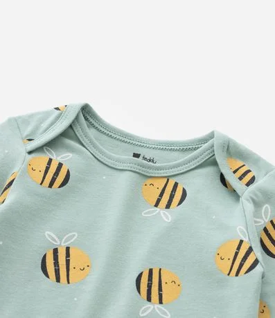 Ref: Body infantil confeccionado em algodão mais sustentável, com gola americana, manga longa e estampa de abelhas. Possui fechamento no entrepernas.