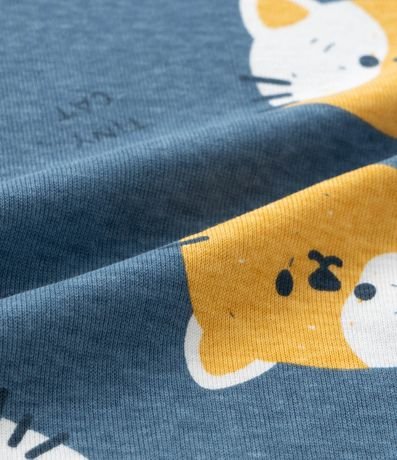 Ref: Body infantil confeccionado em algodão mais sustentável, com gola americana, manga curta com estampa de carinhas de gatinho. Possui fechamento no entrepernas.