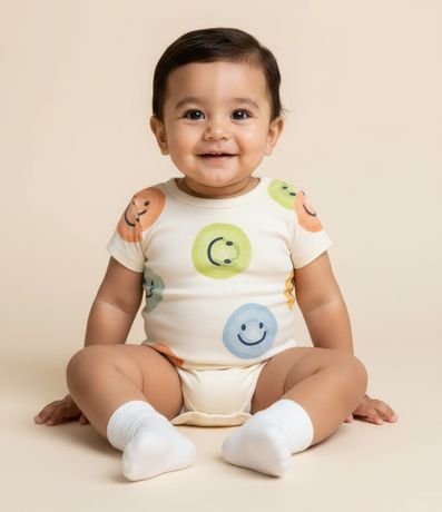 Body Infantil com Estampa Carinha Feliz - Tam 0 a 18 meses