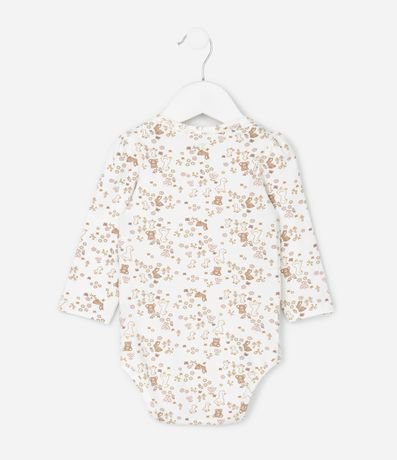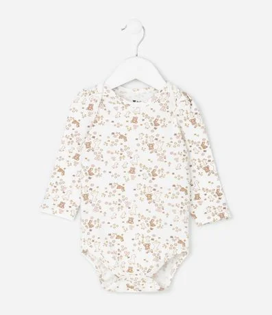Ref: Body infantil confeccionado em meia malha macia, com gola americana que facilita o vestir e estampa fullprint de patinhos e flores em estilo delicado. Possui mangas longas, acabamento confortável e fechamento por botões de pressão no entrepernas. Confeccionado em algodão certificado BCI.
