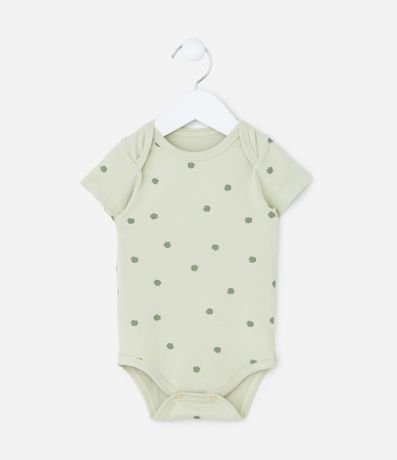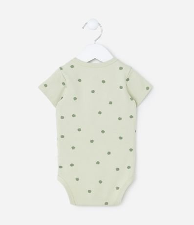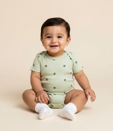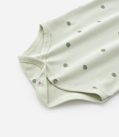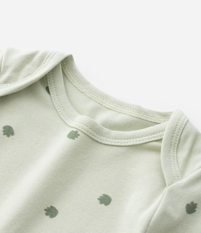 Ref: Body infantil para bebês, com gola americana, mangas curtas e estampa de folhagem. A peça é confeccionada com boas práticas ambientais e algodão certificado bci.