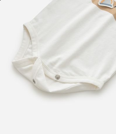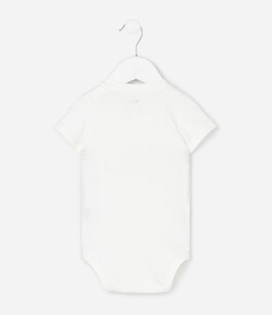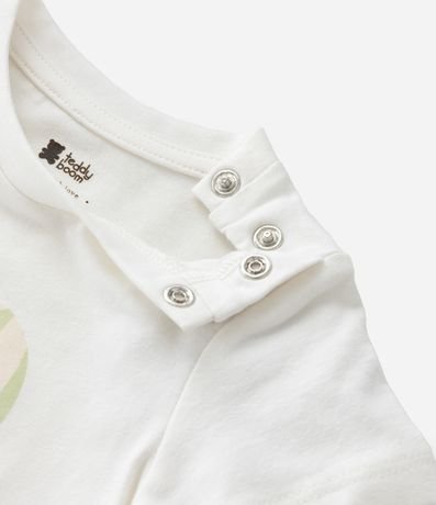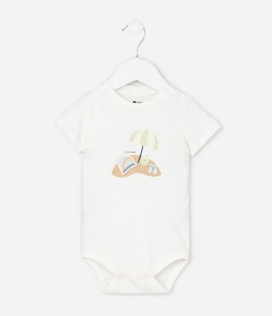 Ref: Body infantil confeccionado em algodão mais sustentável, com gola americana, manga curta, com estampa de praia interativa e possui fechamento no entrepernas.