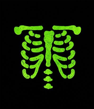 Body infantil com mangas curtas, fechamento no entrepernas e estampa de esqueletinho que brilha no escuro. A peça é confeccionada com algodão certificado bci.