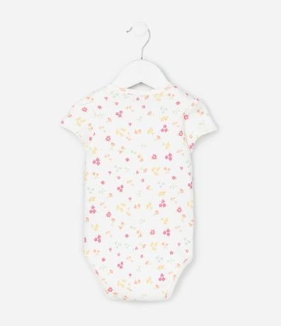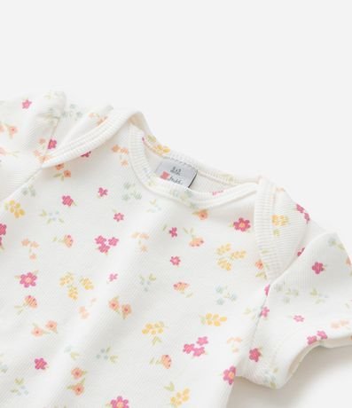 Ref: Body infantil confeccionado em ribana mais sustentável através de boas práticas ambientais, com gola americana, manga curta, com estampa floral liberty e possui fechamento no entrepernas.