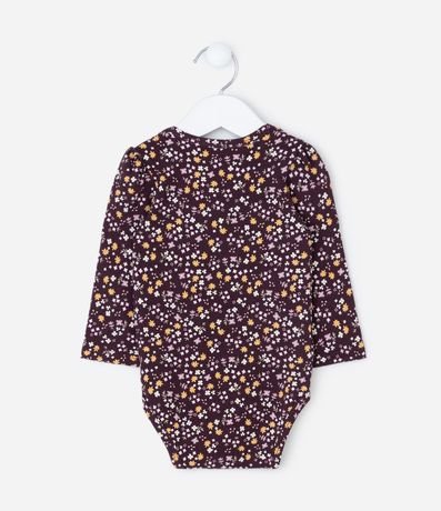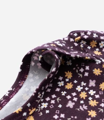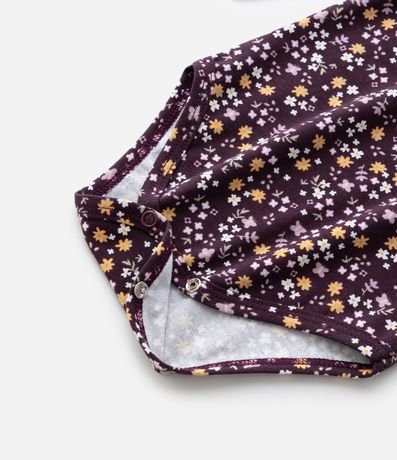 Ref: Body infantil confeccionado em meia malha macia com estampa fullprint Floral Liberty sobre fundo roxo. Possui gola americana, mangas longas e fechamento entrepernas por botões de pressão, garantindo praticidade e conforto. Confeccionado em algodão certificado BCI.