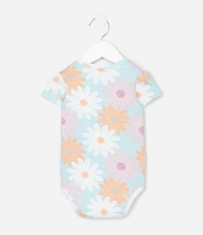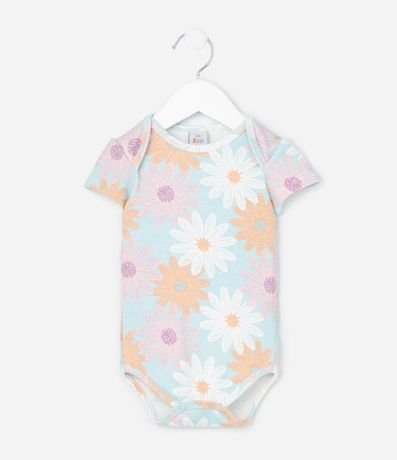 Ref: Body infantil confeccionado em ribana mais sustentável através de boas práticas ambientais, com gola americana, manga curta, com estampa floral e possui fechamento no entrepernas.