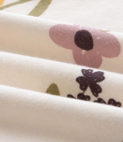 Body infantil confeccionado em meia malha com toque macio e confortável. Possui gola americana que facilita o vestir, mangas longas e estampa floral fullprint com flores delicadas distribuídas por toda a peça, garantindo visual suave e ideal para acompanhar o bebê no dia a dia.