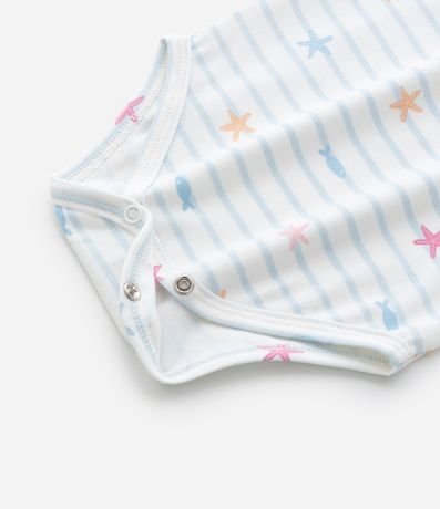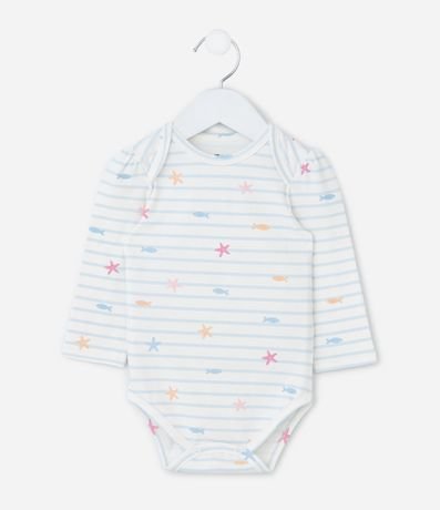 Body Infantil com Estampa Fundo do Mar Listrado - Tam 0 a 18 Meses
