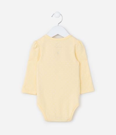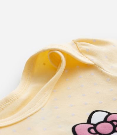 Ref: Body infantil para bebês, com gola americana, mangas longas e estampa da Hello Kitty. A peça é confeccionada com boas práticas ambientais e algodão certificado bci.