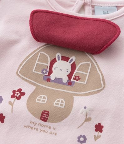Ref: Body infantil confeccionado em algodão, com gola americana, mangas longas e fechamento no entrepernas. Possui estampa interativa cogumelo e coelhinho. A peça é confeccionada com boas práticas ambientais e algodão certificado bci.