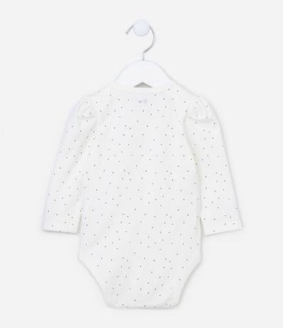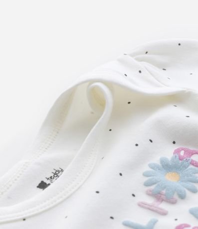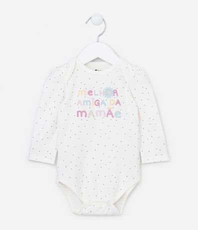 Ref: Body infantil confeccionado em cotton, com mangas longas, fechamento no entrepernas e estampa lettering "Melhor amiga da mamãe" e poá.