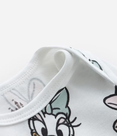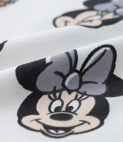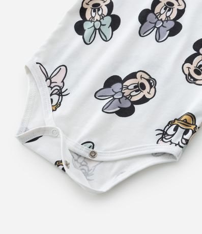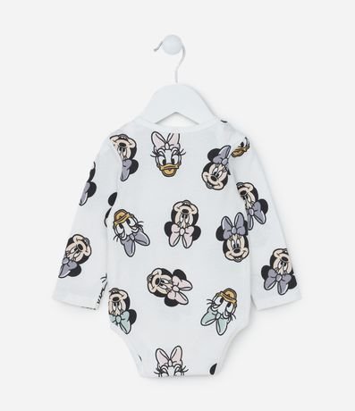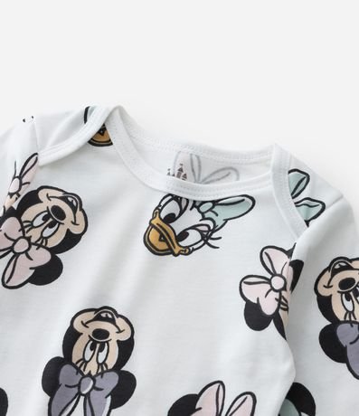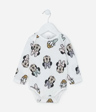 Ref: Body infantil para bebês, com gola americana, mangas longas e estampa Minnie e Margarida. A peça é confeccionada com boas práticas ambientais e algodão certificado bci.