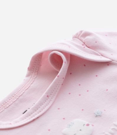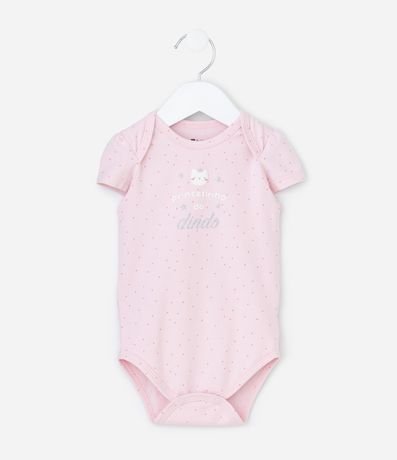 Ref: Body infantil confeccionado em cotton mais sustentável através de boas práticas ambientais, com gola americana, manga curta com estampa poá, lettering "Princesinha do Dindo" e possui fechamento no entrepernas.