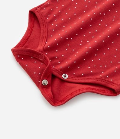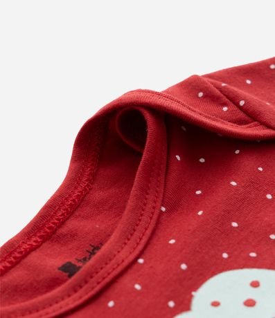 Body infantil confeccionado em cotton de algodão mais sustentável, com gola americana, manga curta e estampa de rena de natal, com fundo poá. Possui fechamento no entrepernas.
