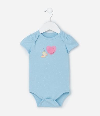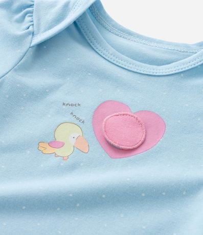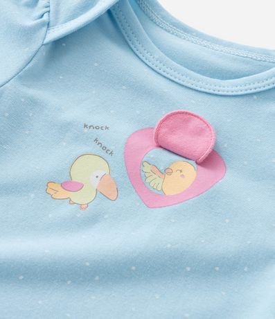 Ref: Body infantil com mangas curtas, fechamento no entrepernas e estampa de tucano e ararinha. A peça é confeccionada com algodão certificado bci.